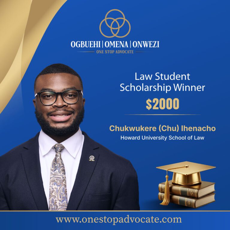We are pleased to announce Chukwukere (Chu) Ihenacho of Howard University School of Law as the recipient of our $2,000 Law Student Scholarship.